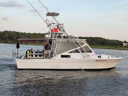 Our dive boats depart daily from the Carolina Beach Yacht Basin located at 100 Carl Winner Ave, Carolina Beach, N.C. The boats are moored on the west side of the marina. You can back your vehicle within 10 ft of our boats for easy loading and unloading. Daily parking is available onsite at $25.00/day or you can carpool from the dive shop for a $15 fee.